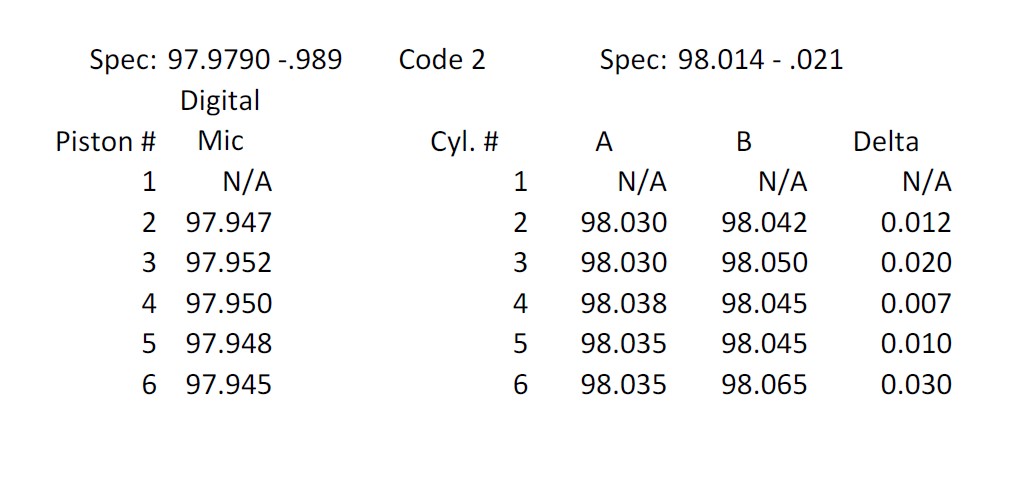 5 98mm Mahle piston and cylinder, 3.2L to 3.4L. EBS can supply a single p/c to make a complete set.$750