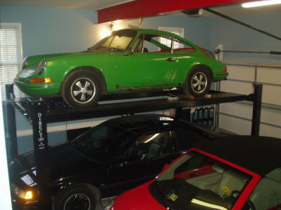 1st step is done the 911 is on the lift. The nice thing about it, when I'm not working on the 911, I can still part 2 additional cars in the garage.
