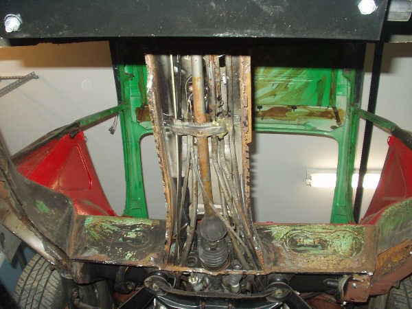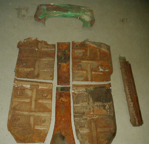 Deconstruction ! Next step determine all the rusted pieces which need to be replaced. Rocker panels, Front suspension pan and tank support, bottom section of left and right section, complete floor pan, front window frame partial, some other small sections around the floor pan and rocker panel.