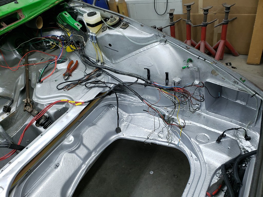 Doors are removed, now the fenders and Glass. I clean up most of the components and inspect, so I know what need to be repaired or replaced. The front wire harness is out as well. It will be repaired.
