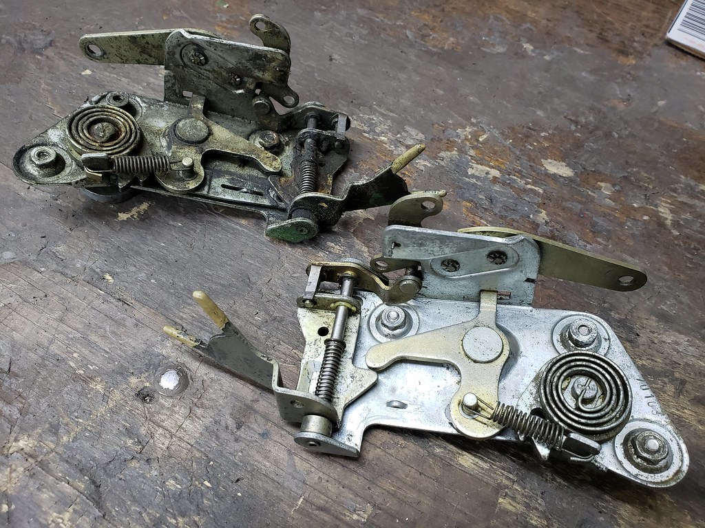The doors are all disassembled. Here the locks. I clean stuff up before packing it away. One before the other after cleaning.