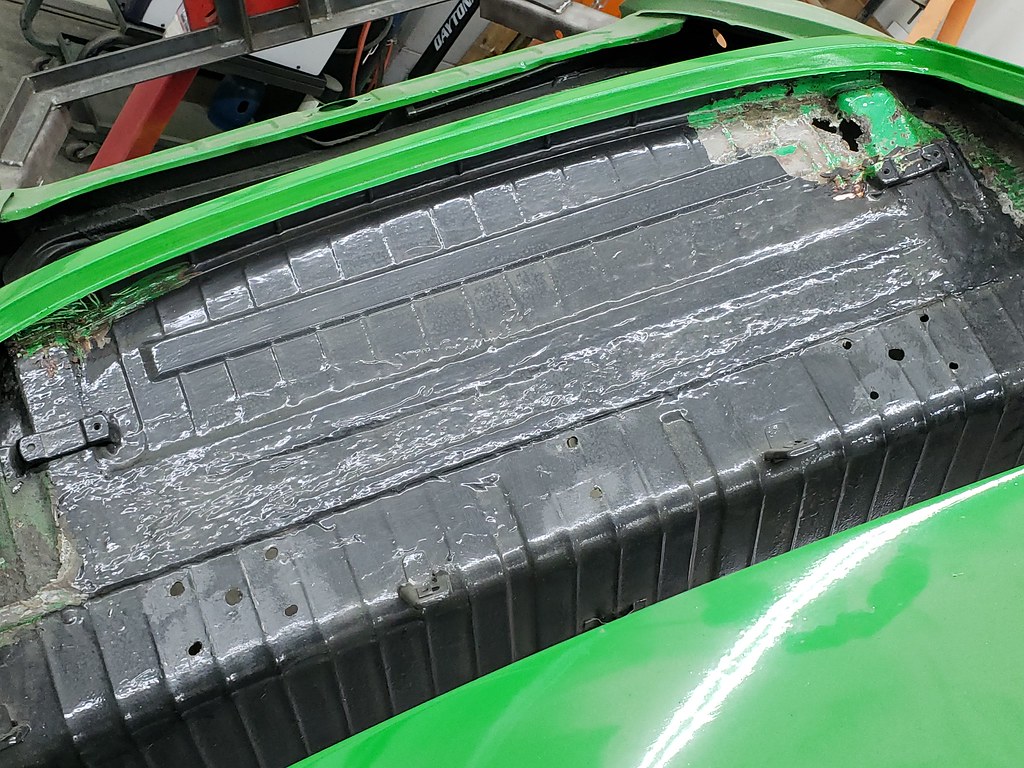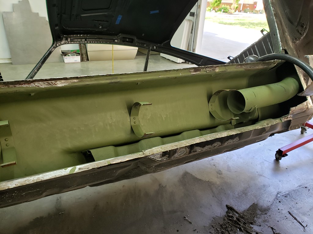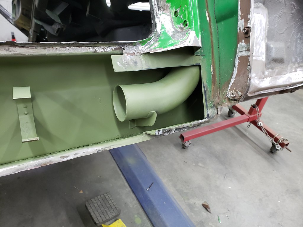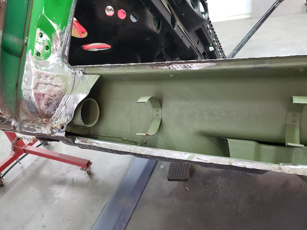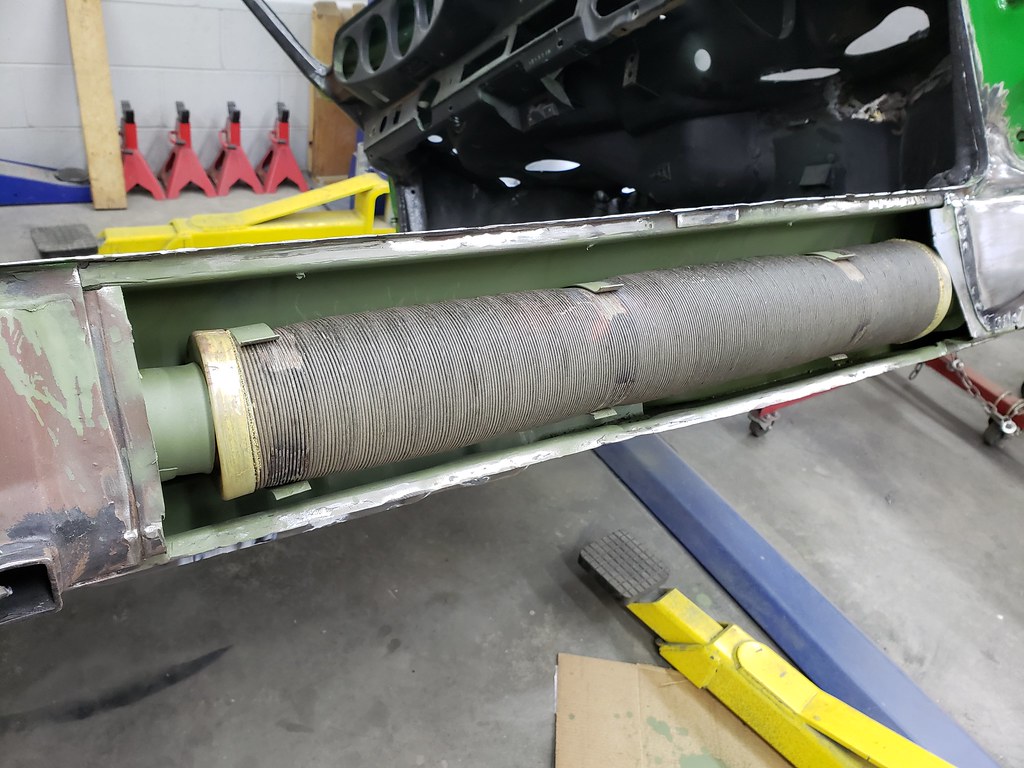 So back to the rocker. After spraying the inside with some green stuff from Eastwood, I installed the heating tube.