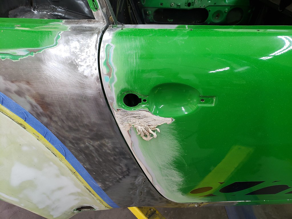 There was a lot of body filler and the sheet metal under it was really bad. So I decided to use another door I had. The good thing is that it already has the mounting hole for the right mirror.