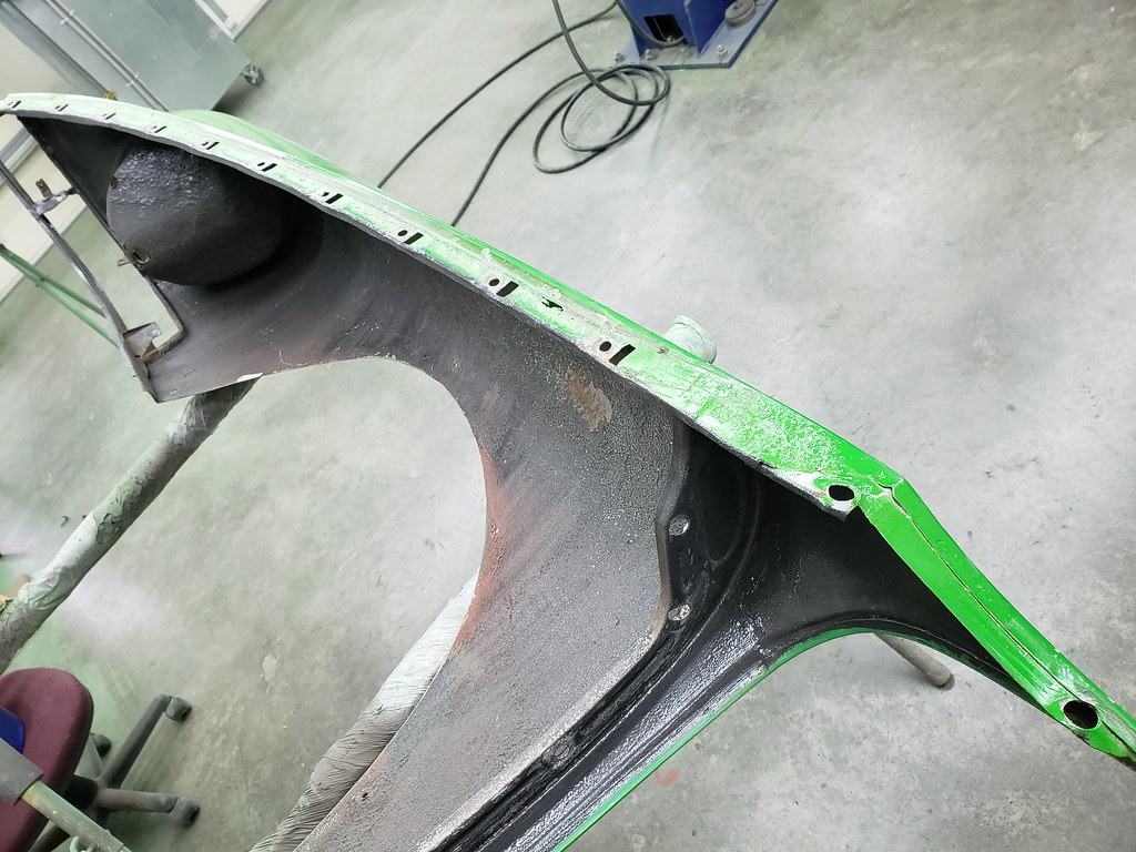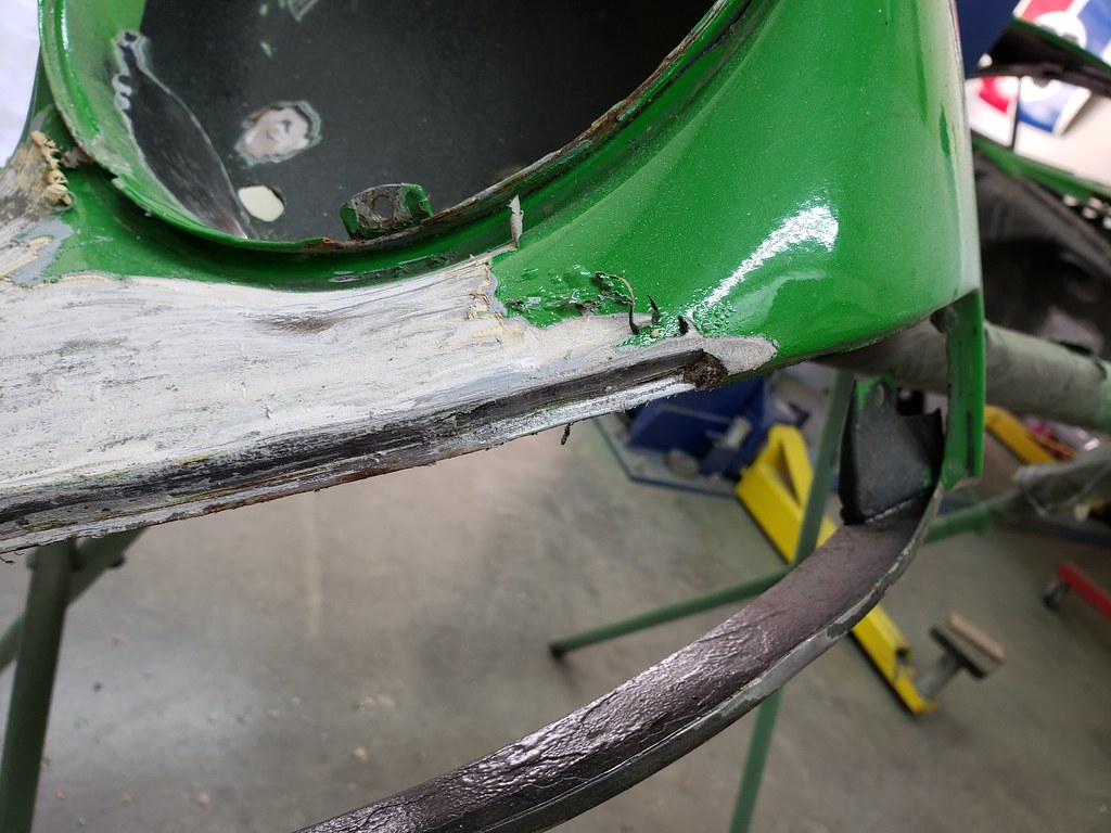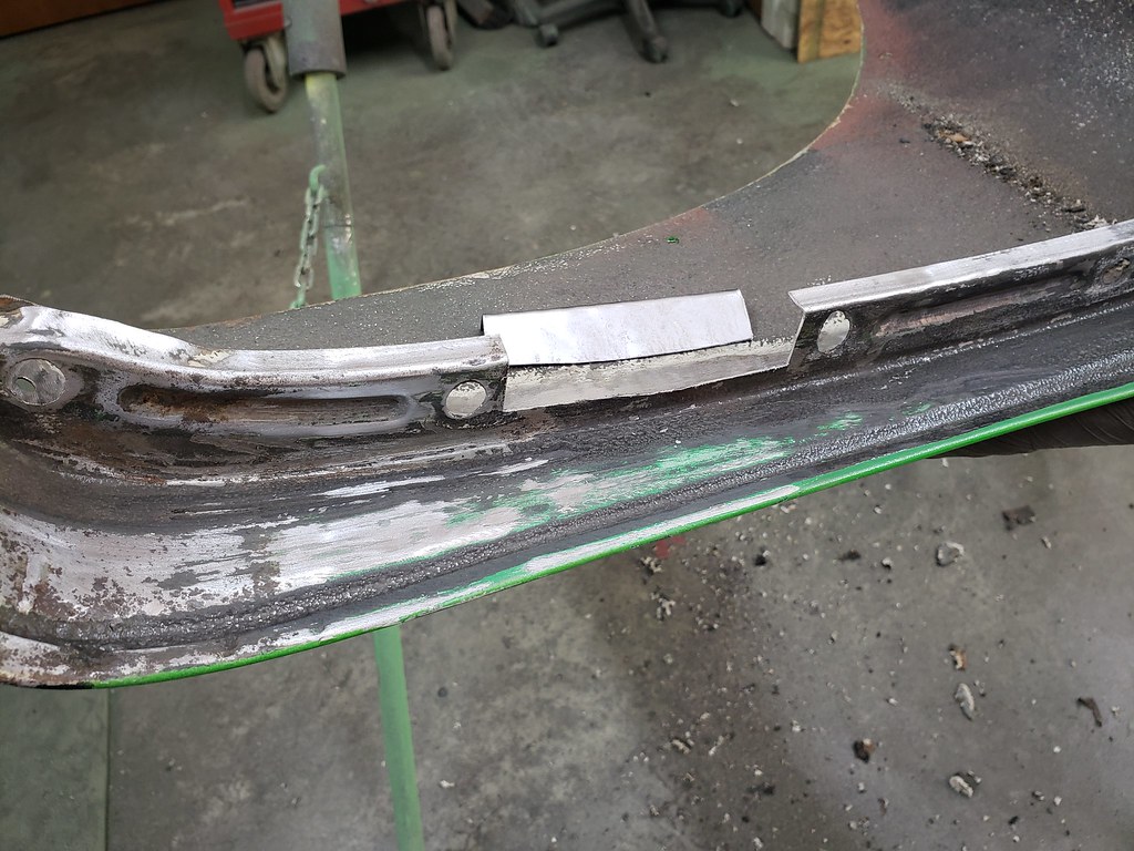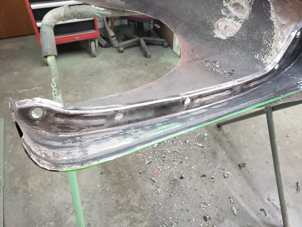 Now I started with the fenders. There was some repair needed where they bolt to the body. Here are pictures of the section I welded in new pieces.