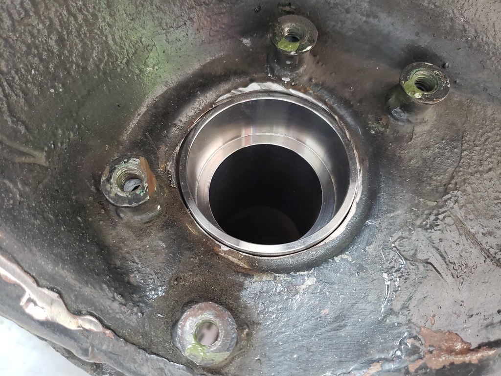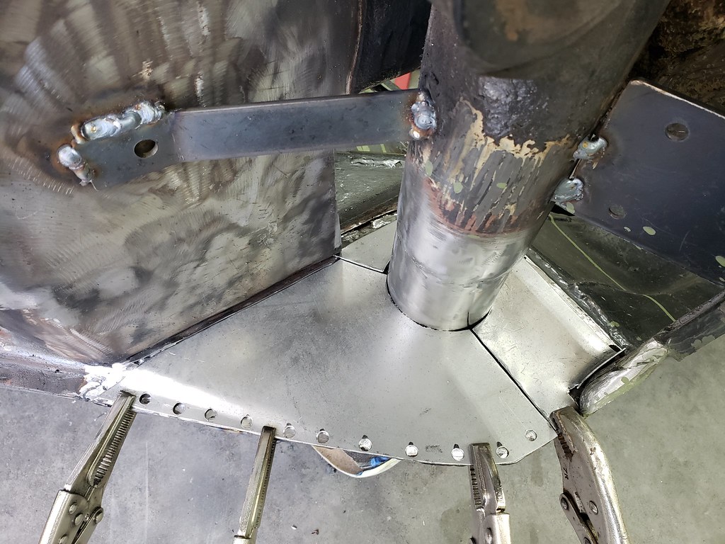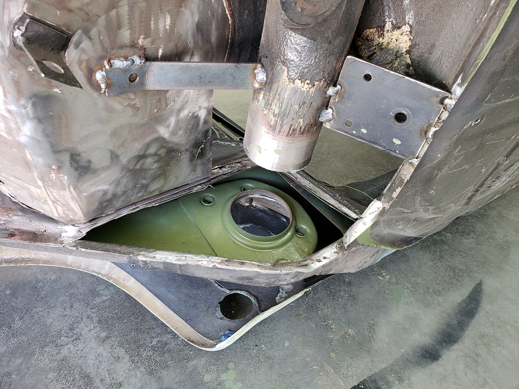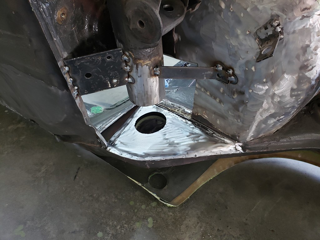 Now lining up the new sleeve with the t-bar and spring plate in place, so it will line up OK. Tack weld the sleeve to the tube.