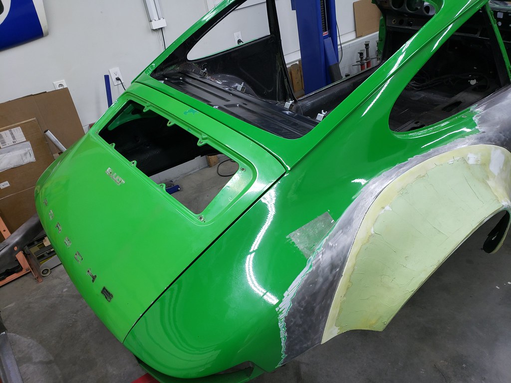 The right side fender was pretty good, but the left one had some repair many years ago. Someone filled in a big gap with fiberglass filler. I removed all this stuff so I can fix this section. I want to make this correct, so I ordered new turn signal housings seals to make sure at the end all fits nice. I will continue on the fender when the seals come in.
