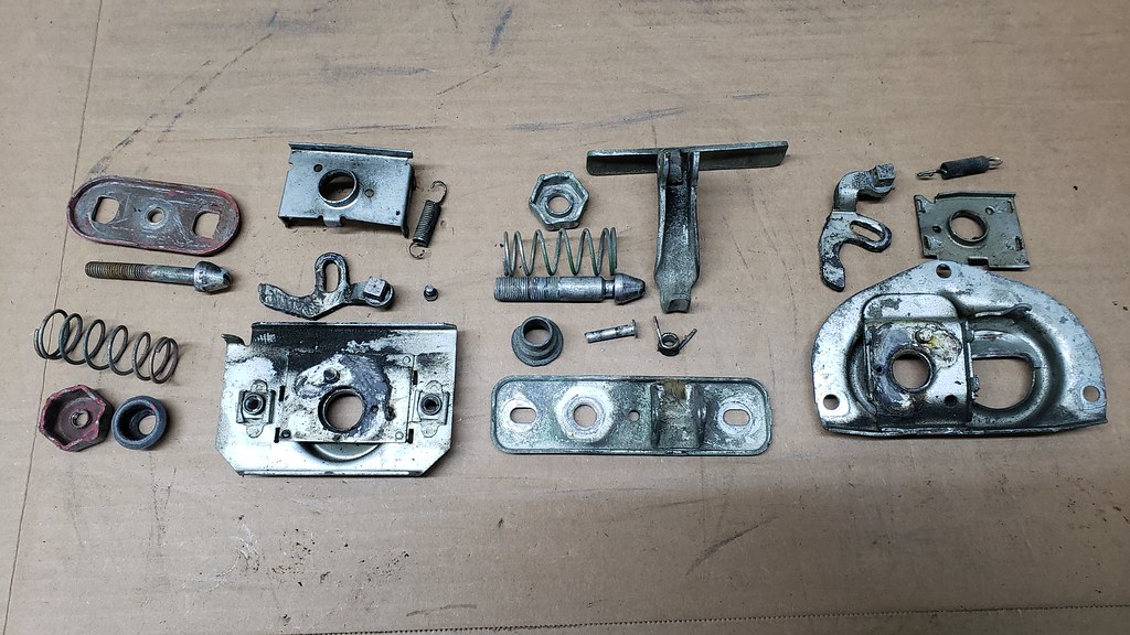 It is time to tackle some smaller projects, so I picked some different components and cleaned them up and restored them. I started with the front and rear hood locks.