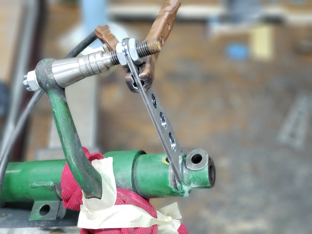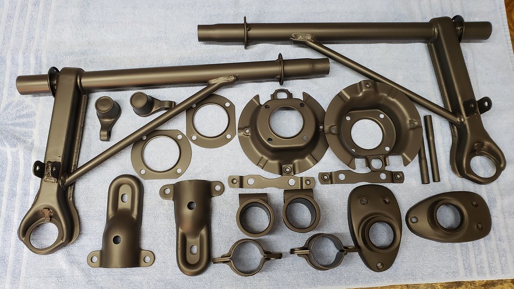 I'm using Carrera Bilstein front struts for the 71, since they have 3.5" spacing for the caliper mount. I also added the bump steer supports.