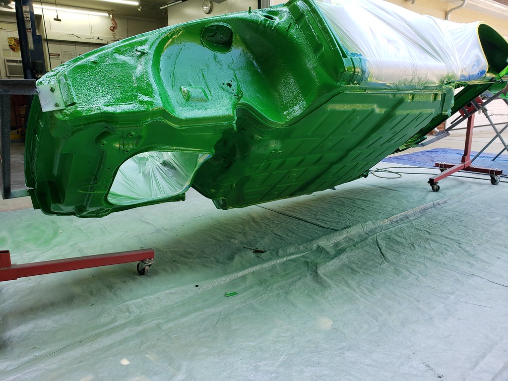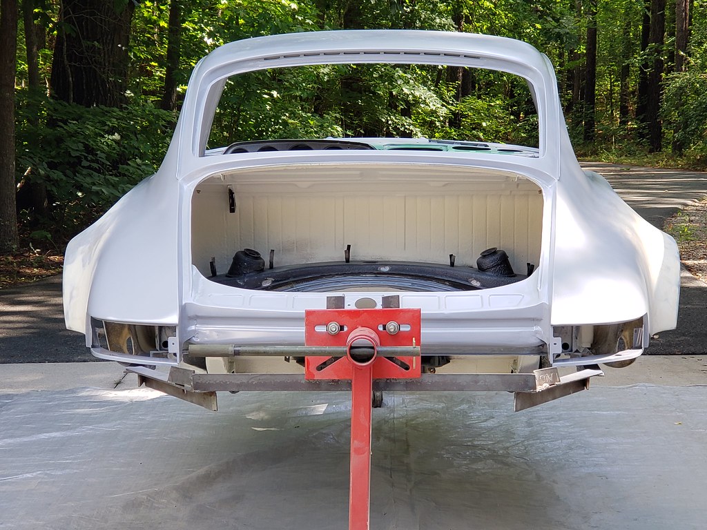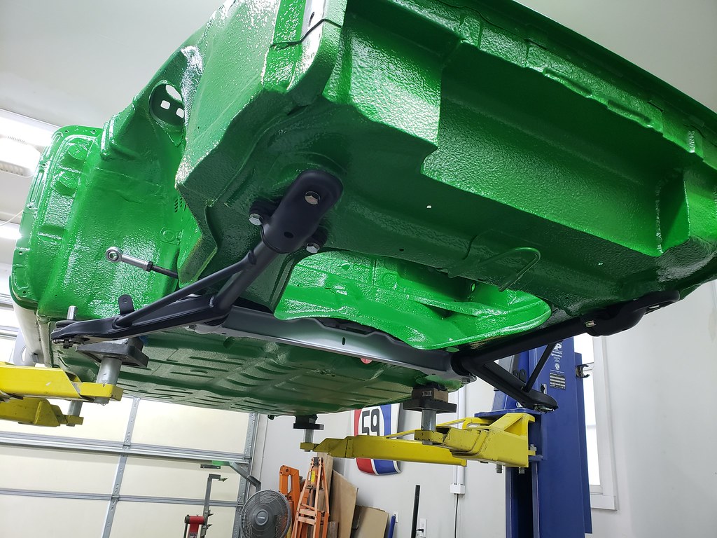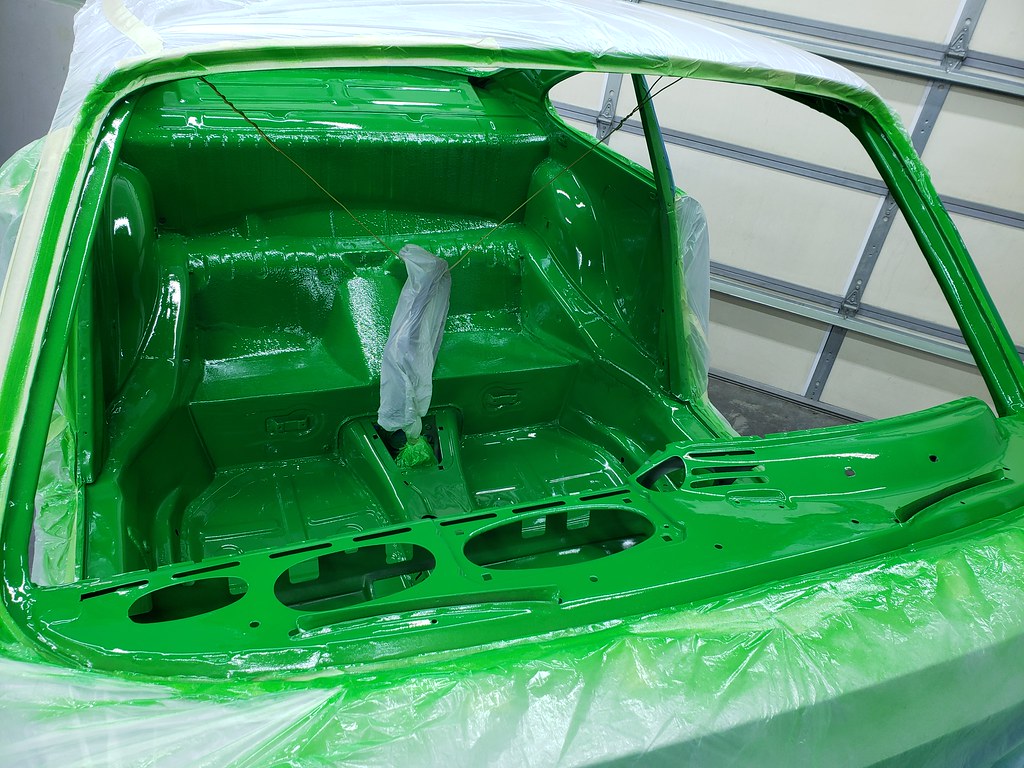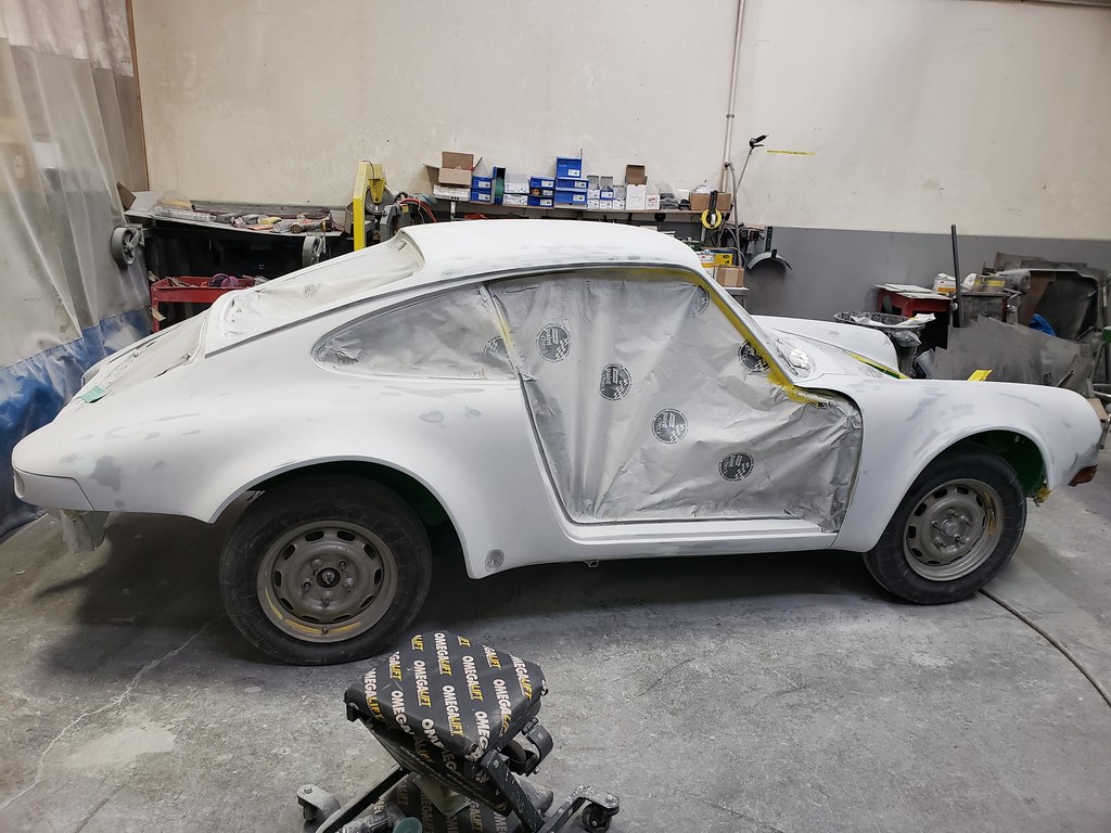 Before I could install any suspension parts I had to prime and paint the underside, trunk, engine bay and the inside. I used epoxy primer for the bare metal and some polyester primer for the fiber glass sections.
