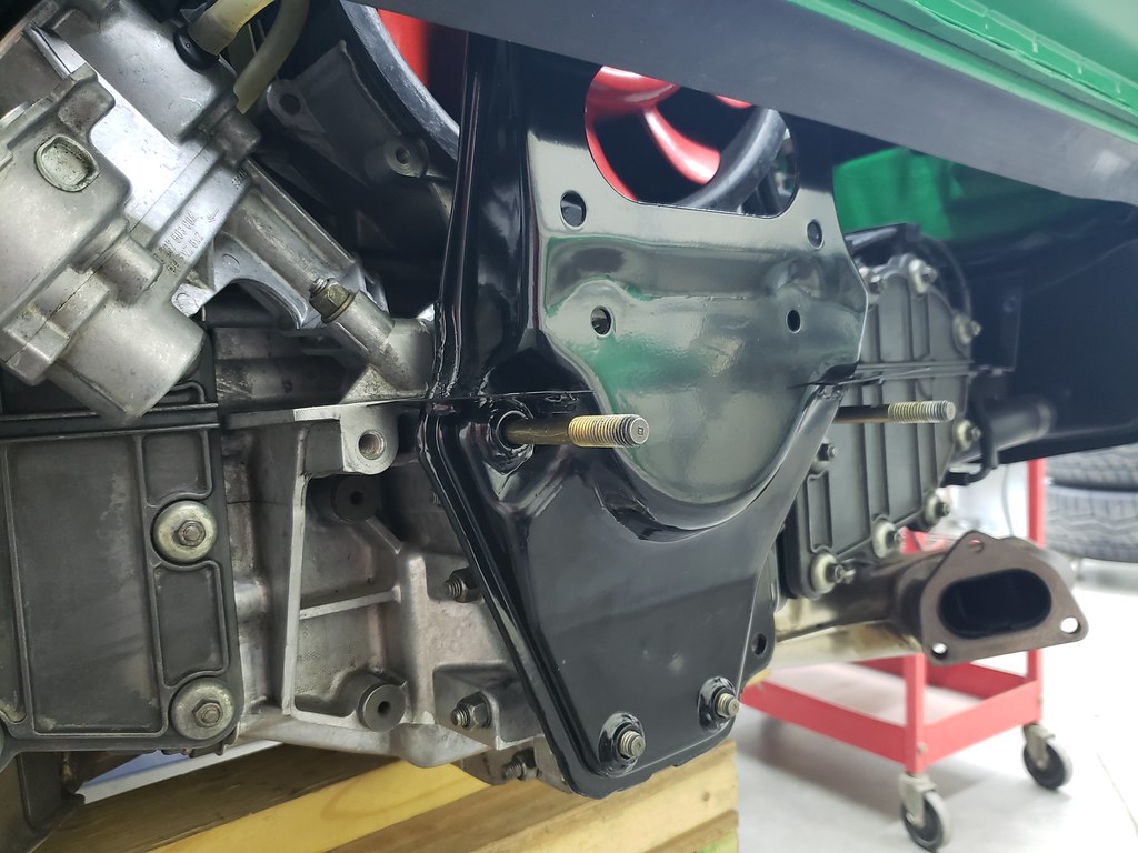 I started to remove the engine support and converting the 3.6 engine from triple crank pulley to single pulley, to make more space for the GT3 muffler.