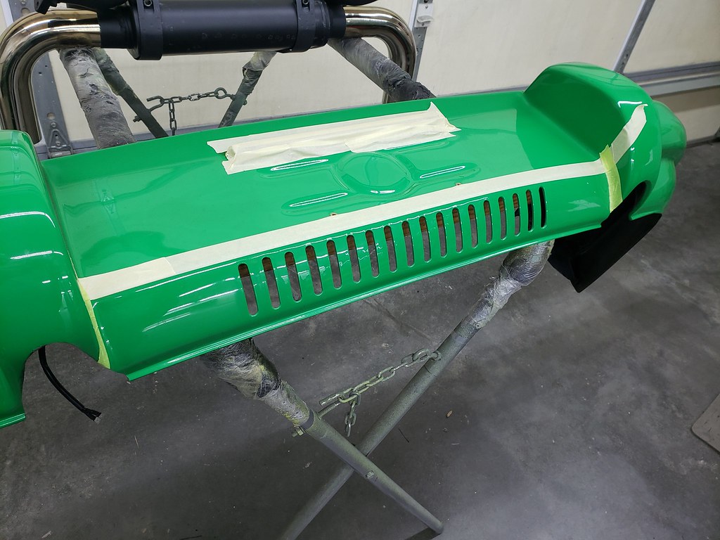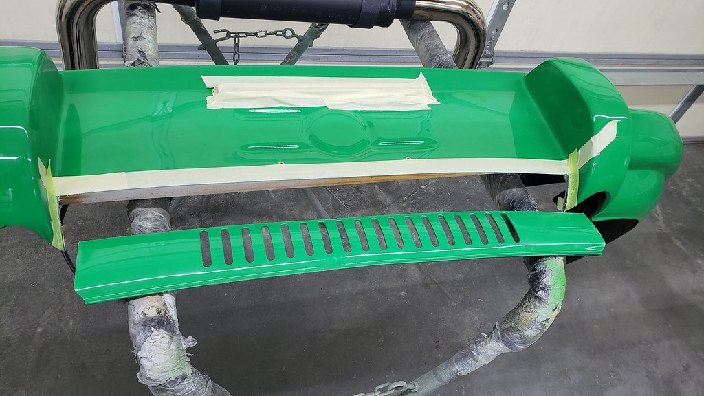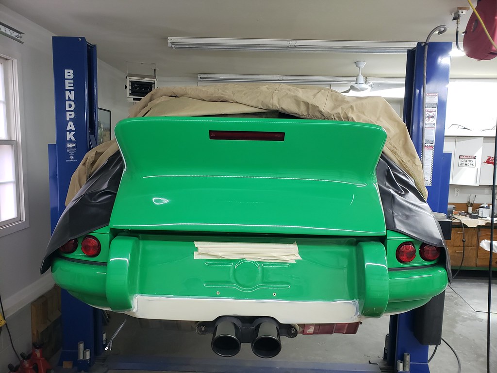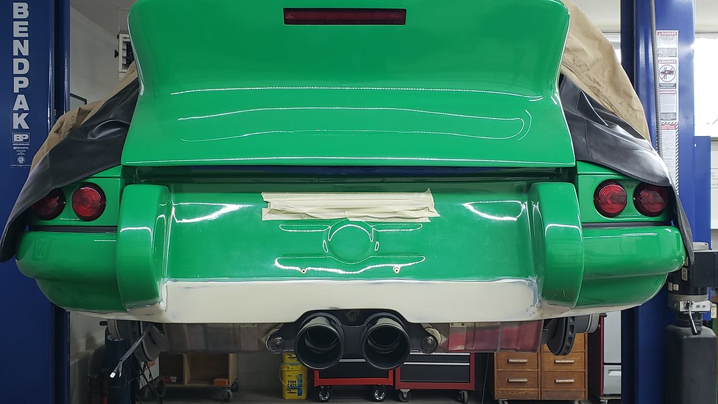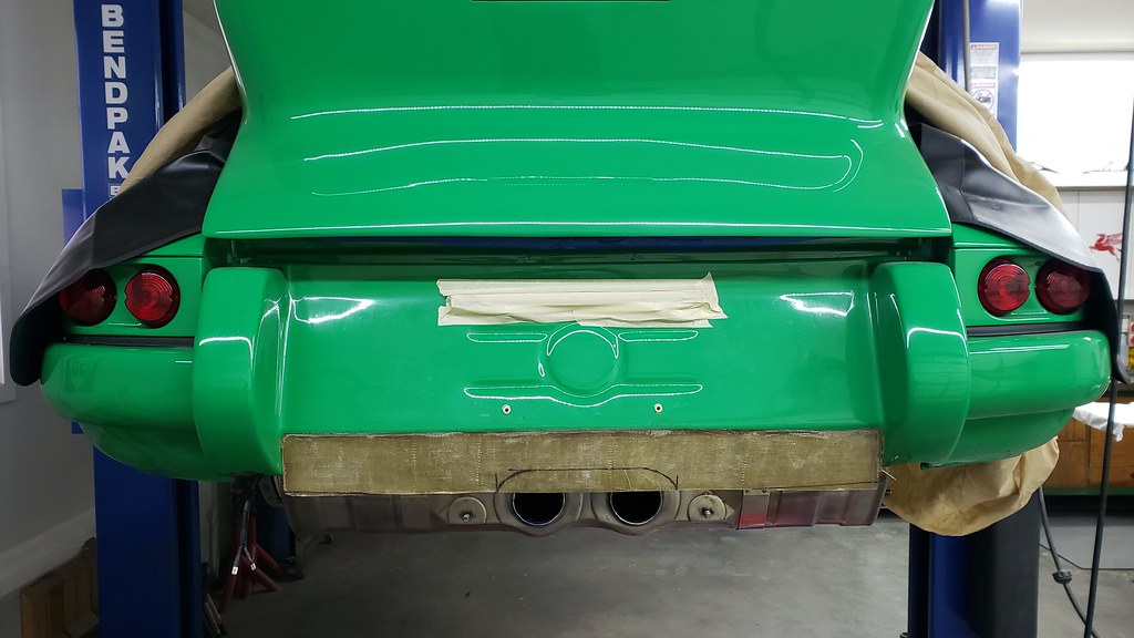 I installed the new crank pulley and the engine console, and test fitted the GT3 muffler. The lower section of the rear bumper need to be modified.