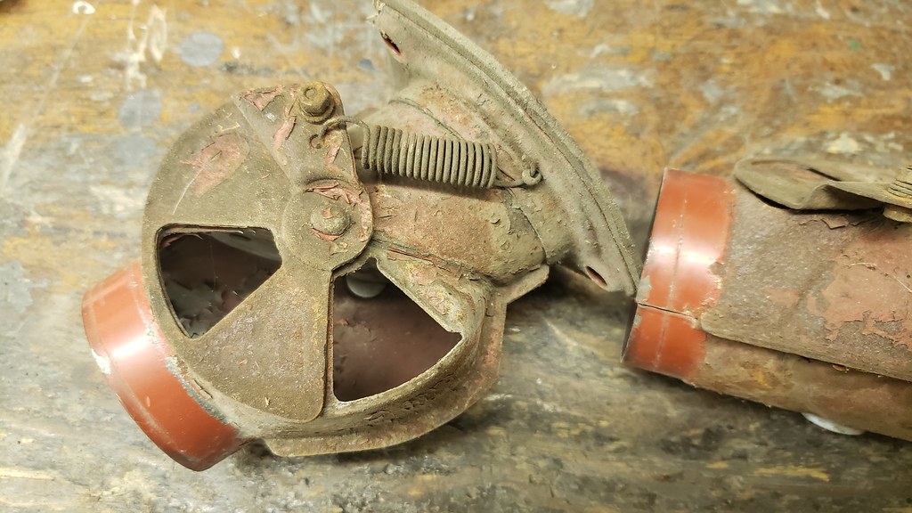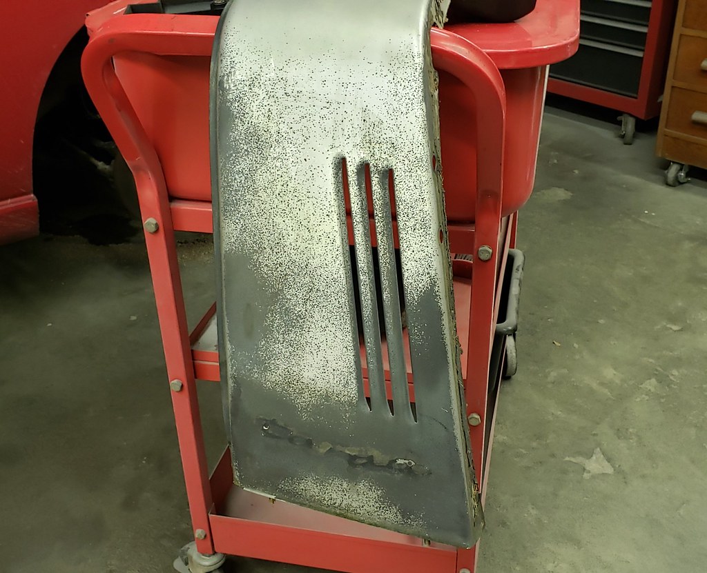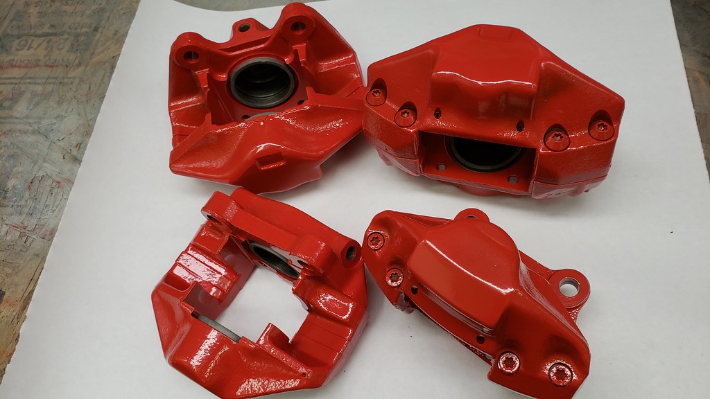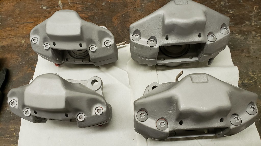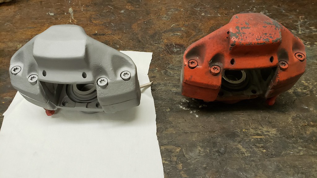 Next, I started with the Brake calipers. Cleaned, Blasted. Here the rear before and after cleaning and blasting.