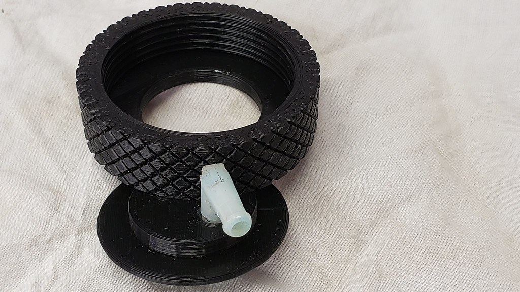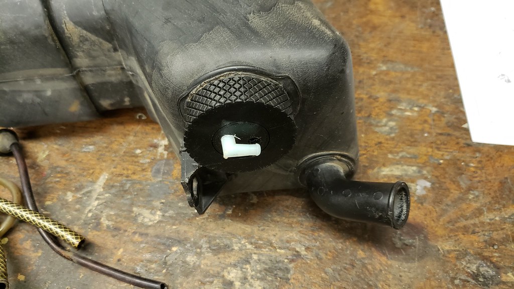 When I got the car there were all pieces under the left fender missing. No gas vapor tank, no windshield washer tank and no support, etc. I found a good Windshield washer tank, but without cover and center piece for the tubing for nozzles and pump. I made the cover and center piece for the washer tank with the 3D printer.