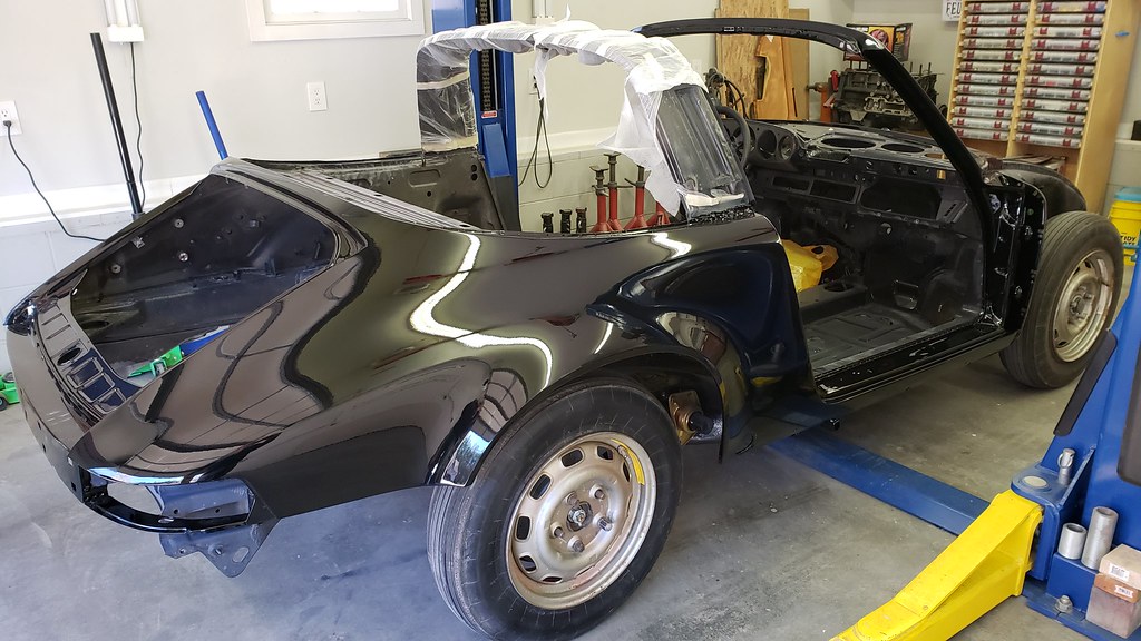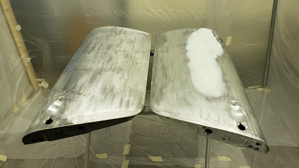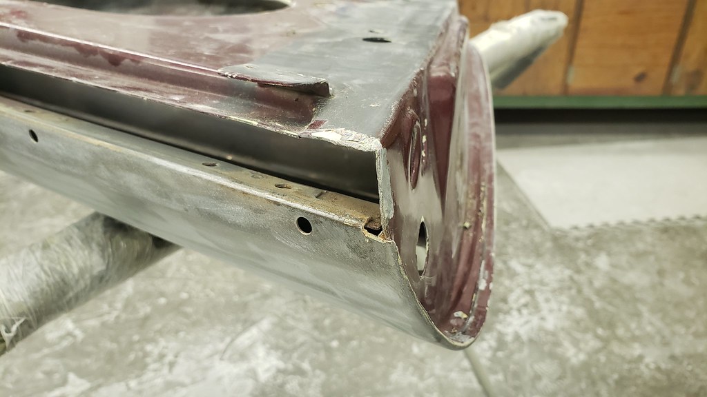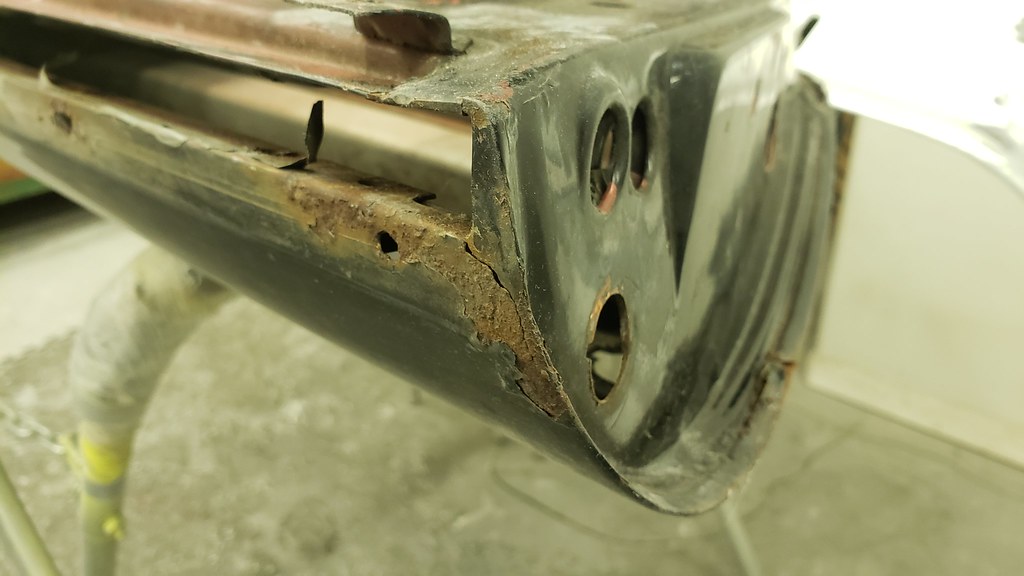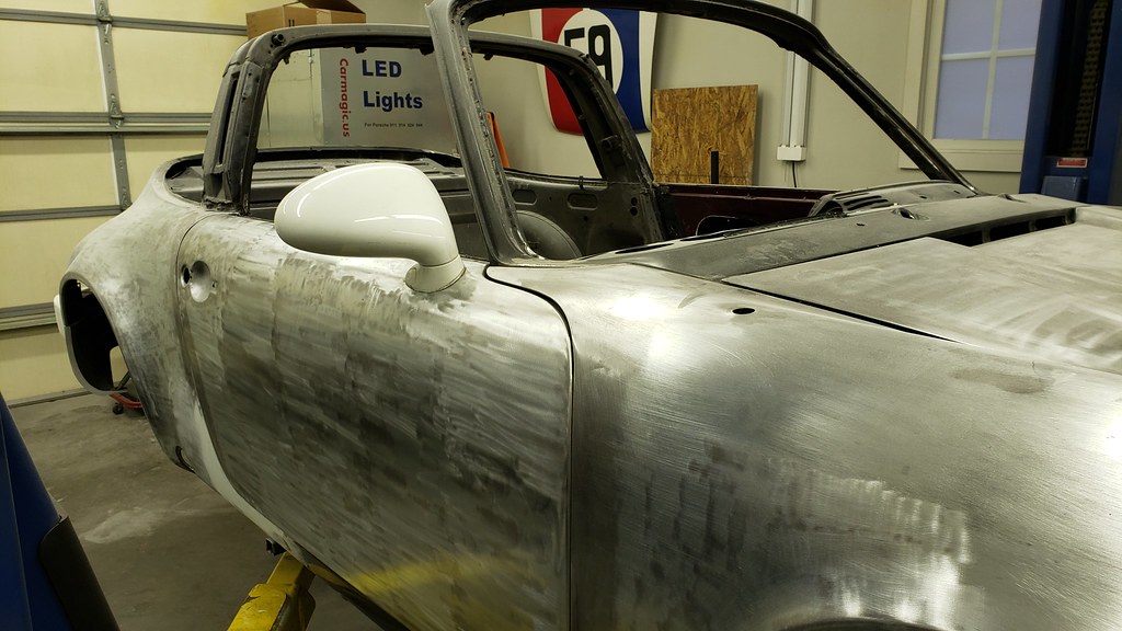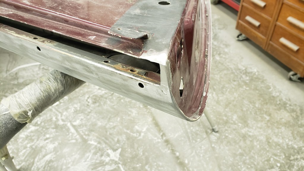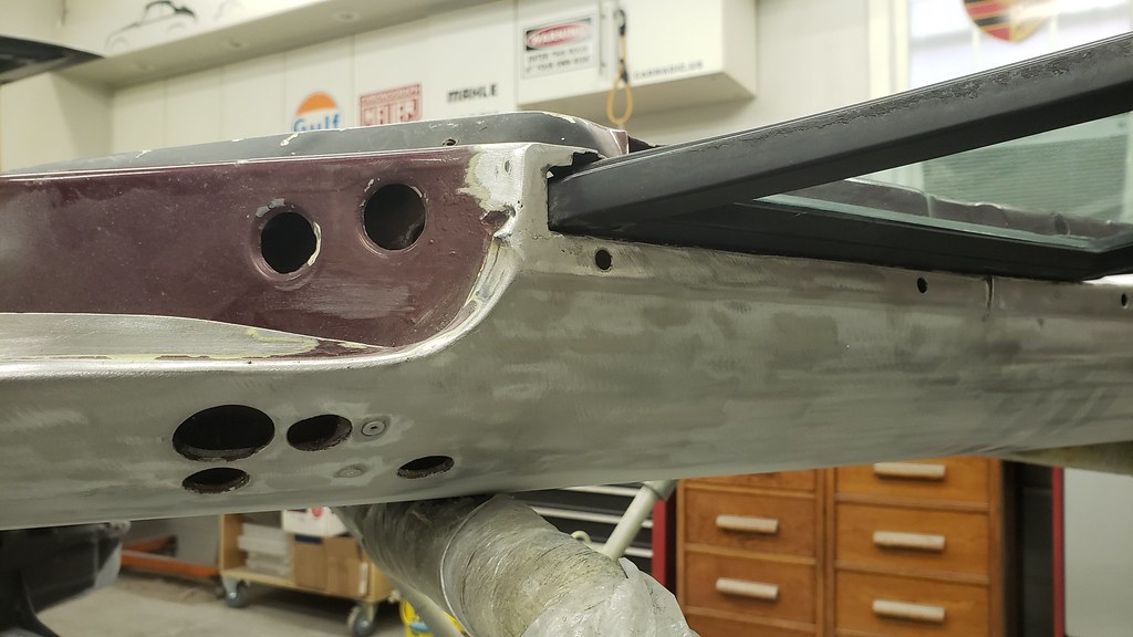So I was working on the driver side door, and learned that the Coupe and Targa doors not completely the same. The original door was rusted, so I have a replacement one. I noticed that the section where the window frame mounts are different front and back. Here is the replacement door: