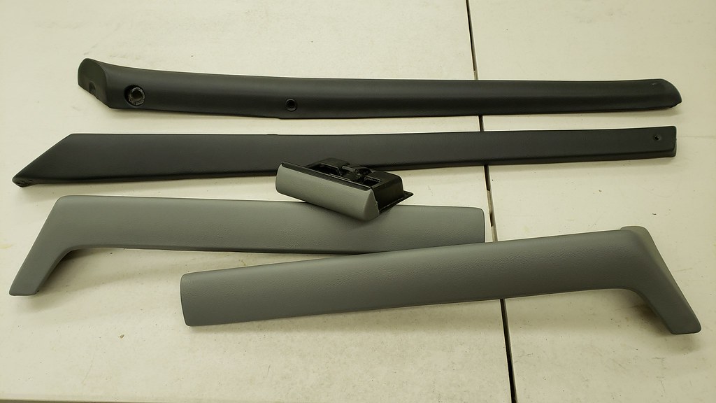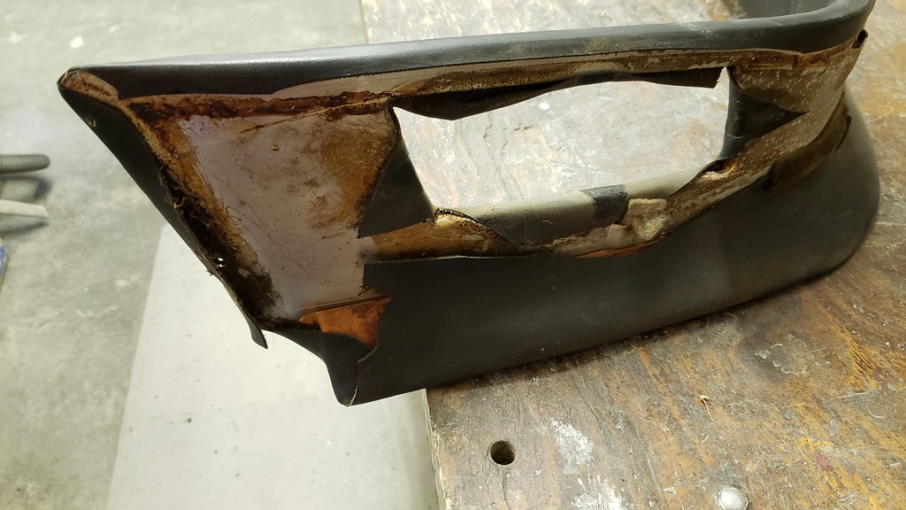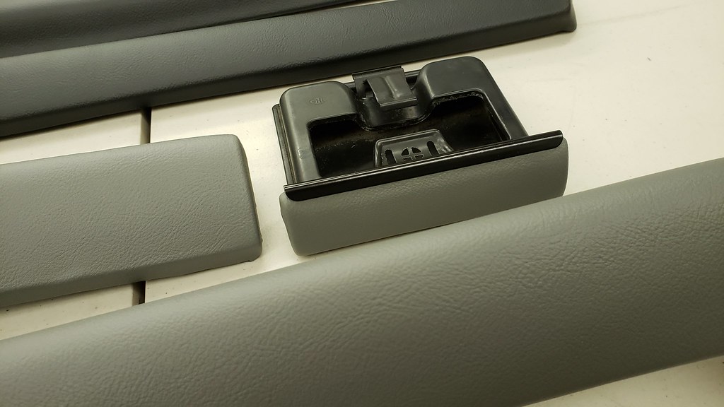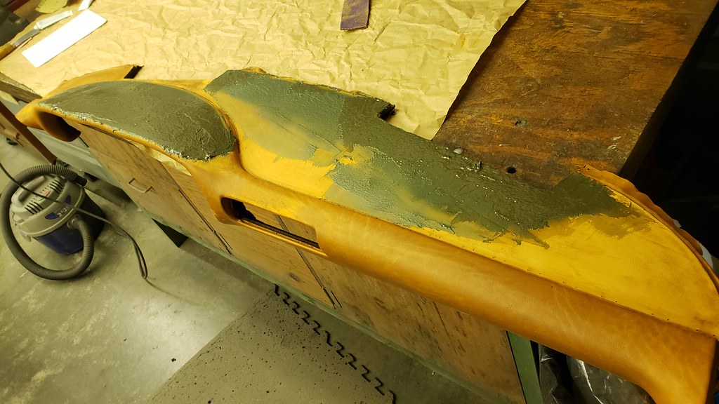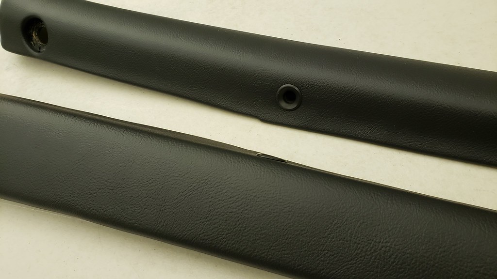 I took the old leather off of the knee pads and covered them with vinyl. I found a good set of door tops and also recovered them with vinyl.
