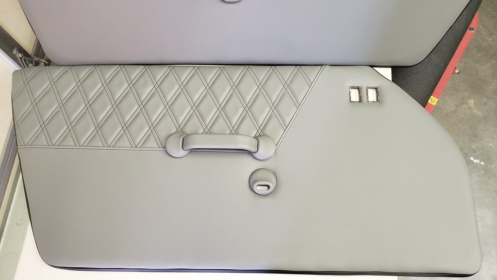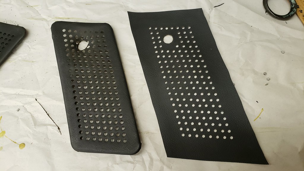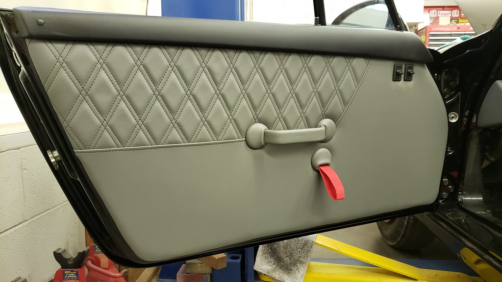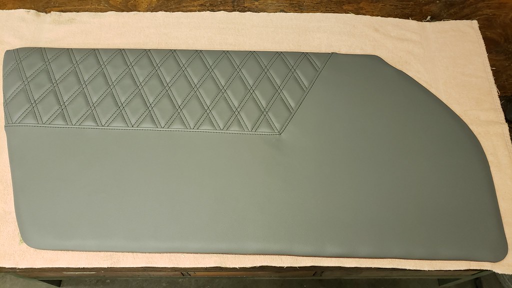 I made new door panels. I used expanded PVC for the cards. I had an upholsterer make the stitching for me according to my layout.