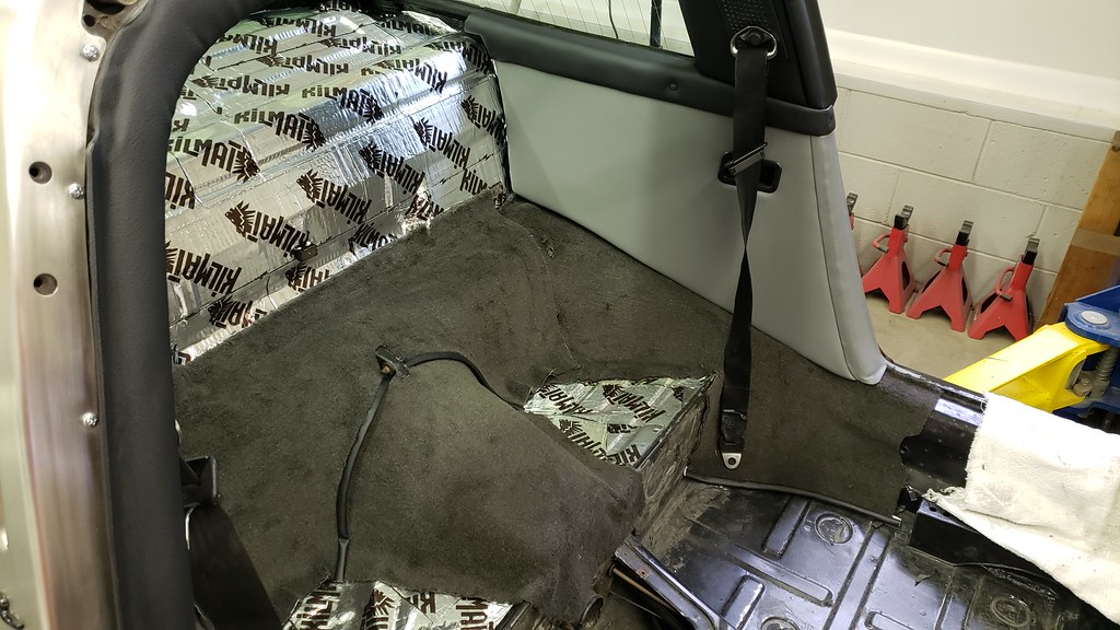 I decided to make a rear seat delete shelf, since nobody will ever sit there. This way I got a good place for the speakers. I didn't want to cut holes in the new door panels, and I didn't want any speakers in the rear self.