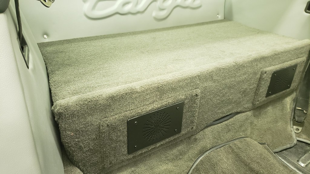 I finished the speaker install in the rear seat delete shelf. I used Infinity reference speakers. The speakers don't come with grilles, and I could not fine any grills, so I made some with the 3D printer. Here are some pictures.