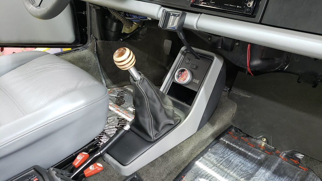 The next thing was to finish the console. It has the Air/Fuel gauge, volt display, and USB connection from the radio, and a manual switch for the oil cooler fan.
