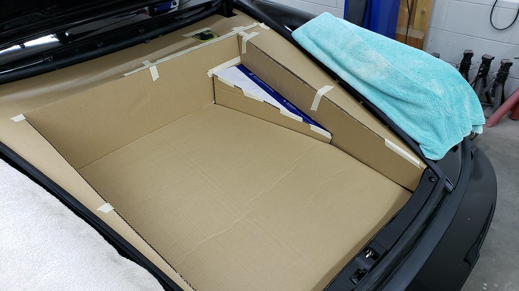 I wanted to give the Frunk a nicer look, so I made some templates from cardboard. CAD (cardboard Aided Design)