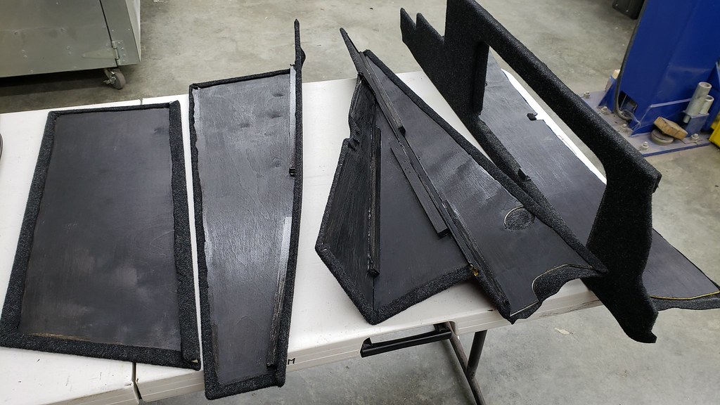 I used 5mm plywood as base, and covered it with trunk carpet. Here are the pieces. They sit nice in place and are easy and quick removed if needed.