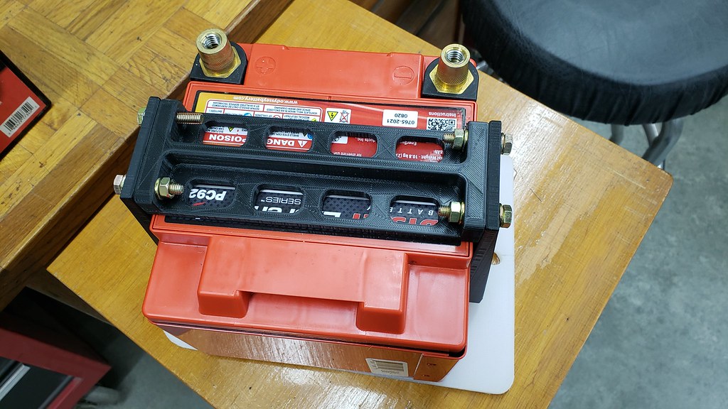 There was another thing I needed to. The Battery mount. I used a IKEA cutting board, inserted four M6 rivnuts, and made the rest with the 3D printer. Here are some pictures: