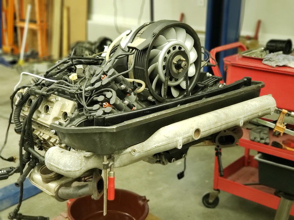 I removed all the pieces around the engine and clean up a bit. I also used the 993 crossover heat pipe, since I got the 993 heat exchangers.