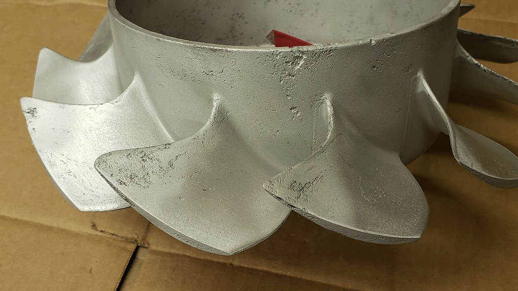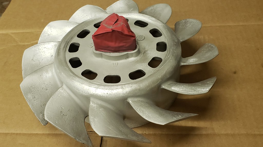 I grit blasted the cooling fan. It didn't looked that bad, but had a few little bubbles in the paint. And after blasting it I found that it is a bit rough.