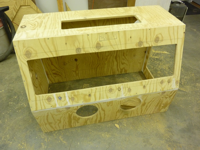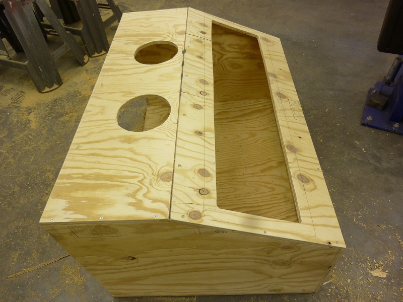 Side opening for the door is also cut