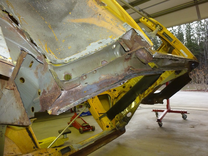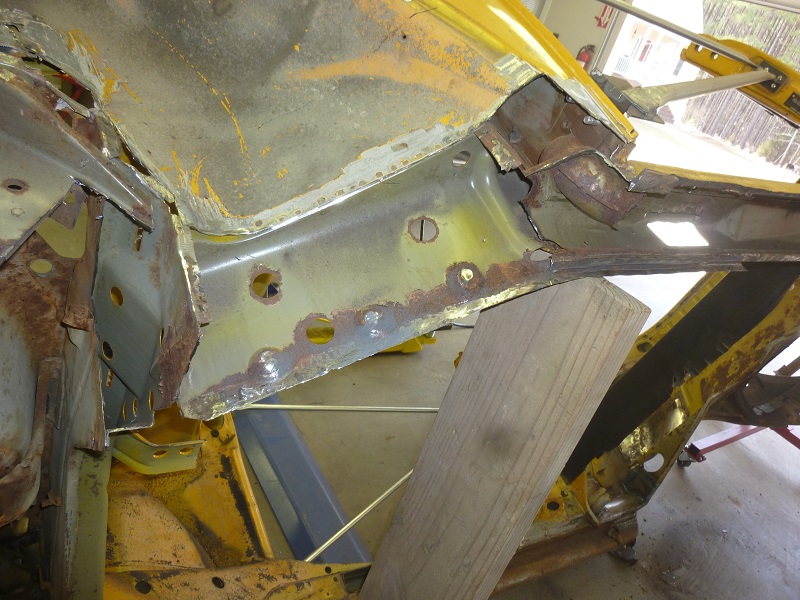 With the rear section done, it's time to move to the left front section, where I had to cut out quit some rust.