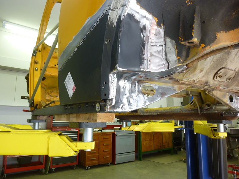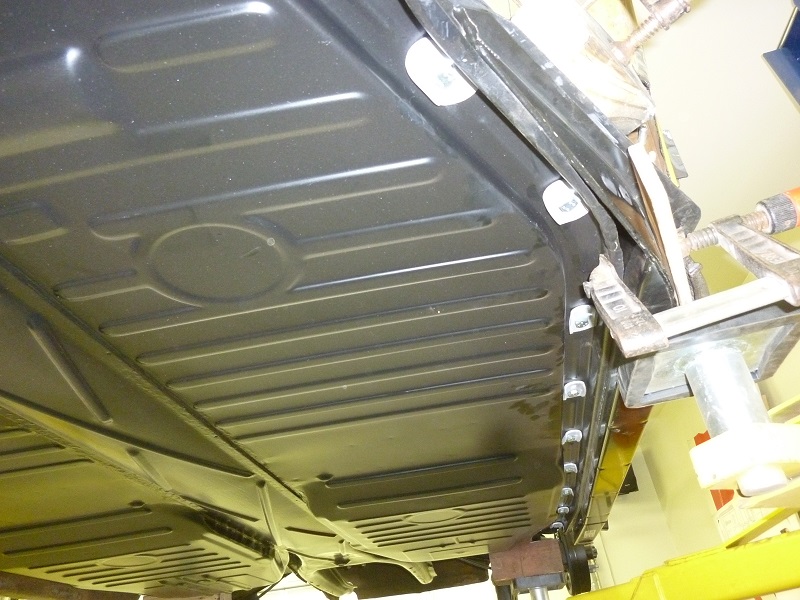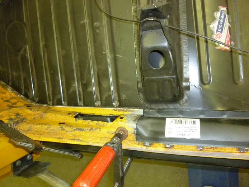 Line up of all the holes between the support rail, the heater channel and the floor pan. This took more time as I have expected.