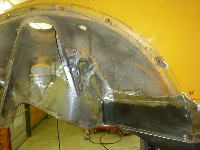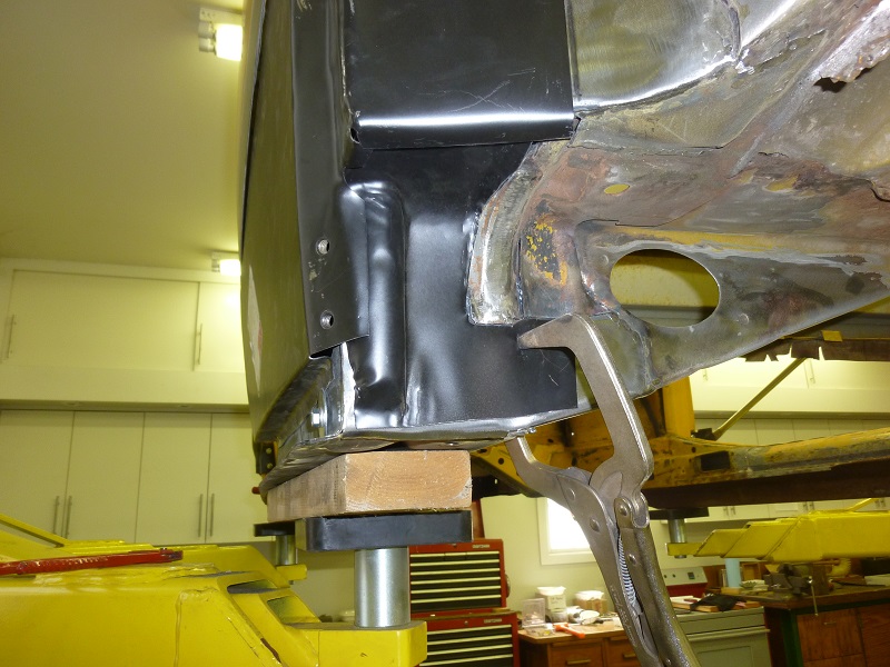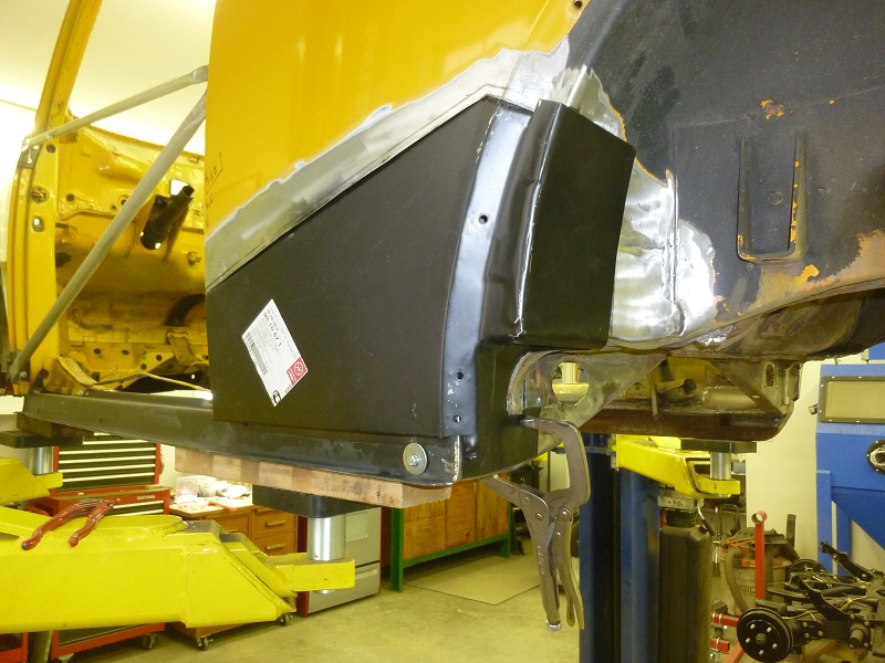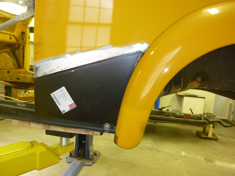 I found that the piece which goes under the section, is available, so I ordered that. Saves some cutting, bending and hammering. Fitting in the bottom section of quarter panel, and the bottom piece.