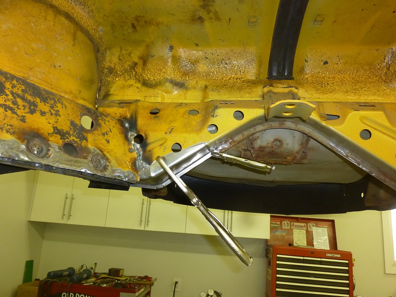 Looks like I have to do some fitting of these holes, between the channel, rail, and the floor pan. Also the front end piece I had to flatten out, because it was too short.