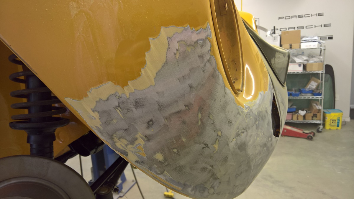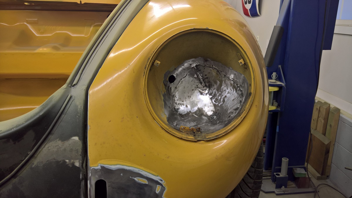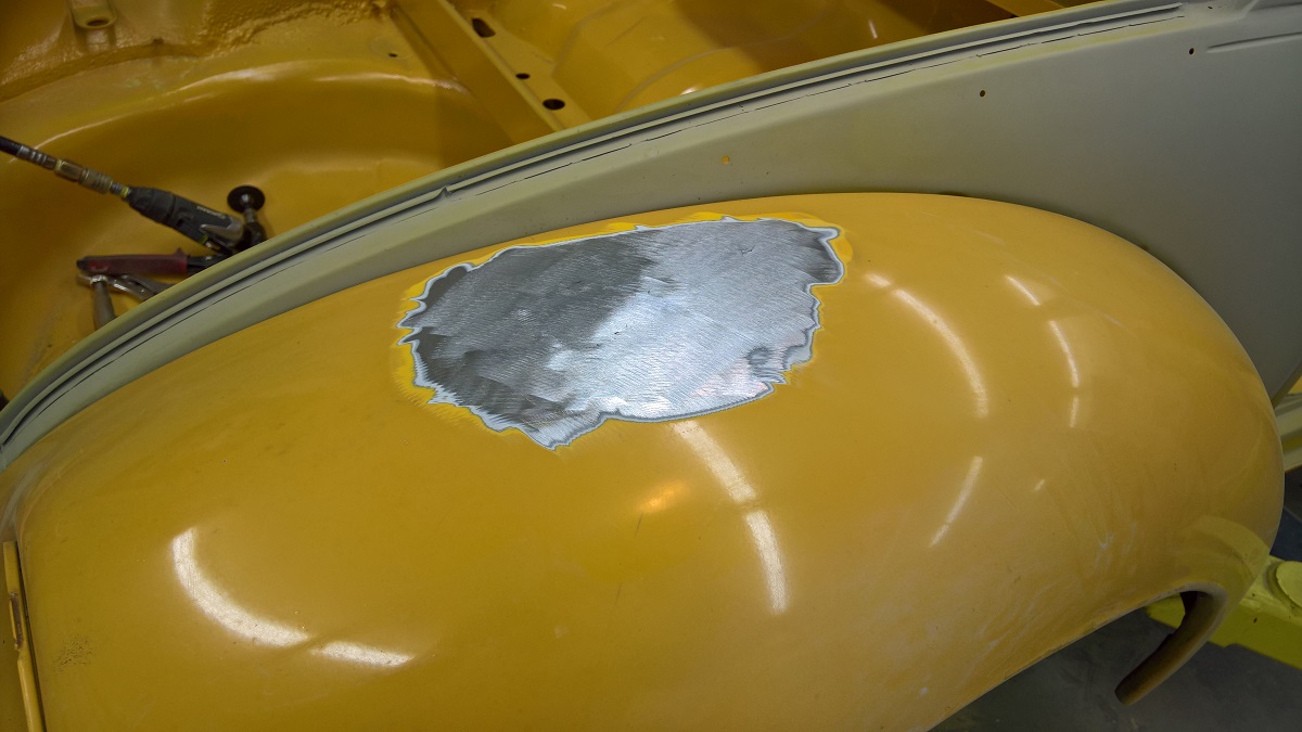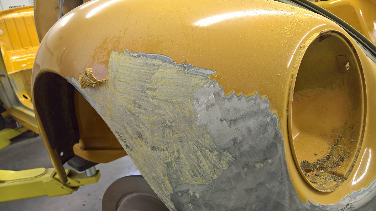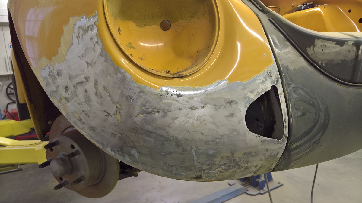 So I removed the excess body filler and flatten out the sheet metal a bit. So I will use a bit less filler.