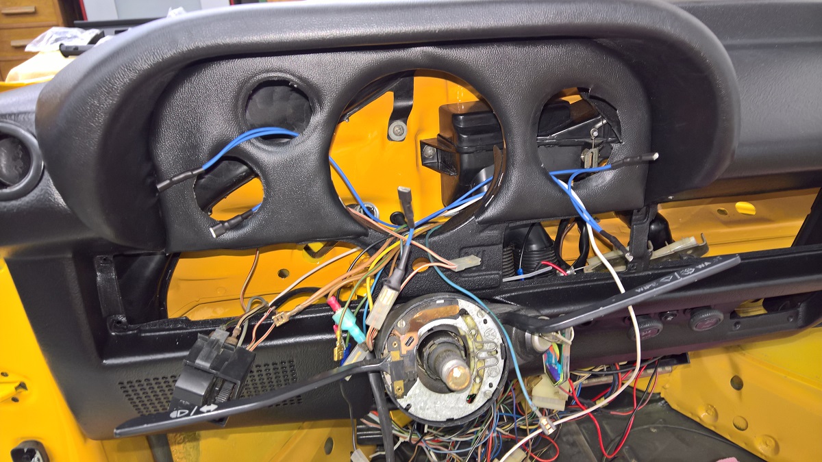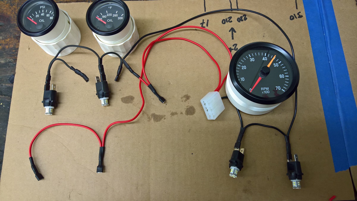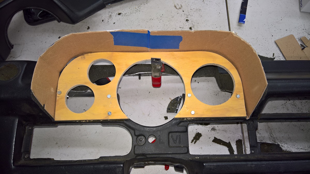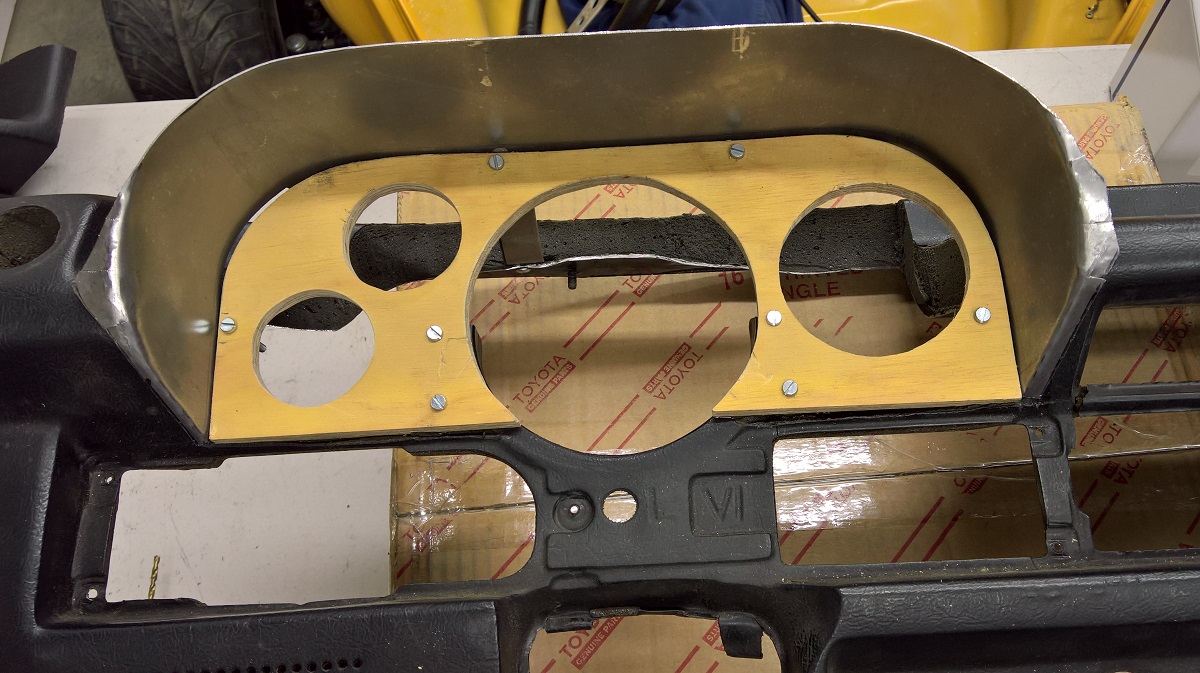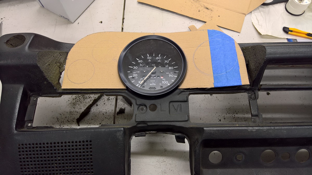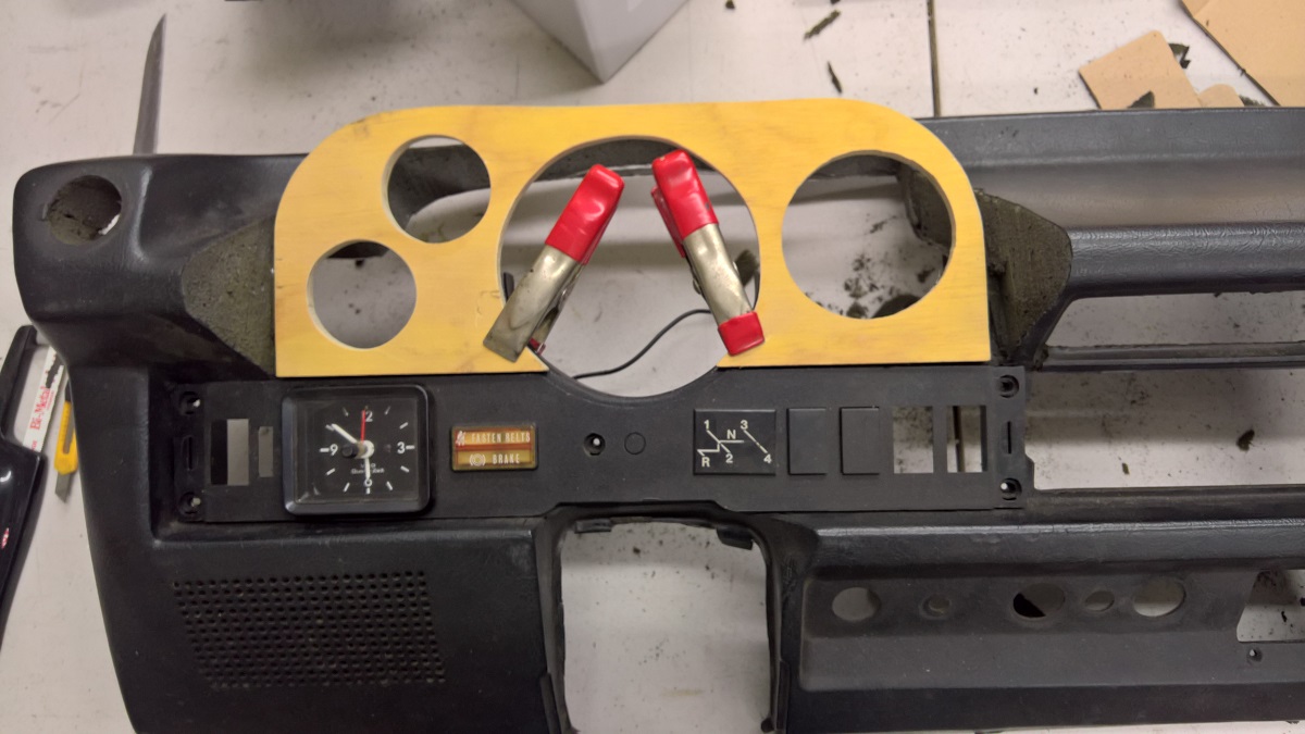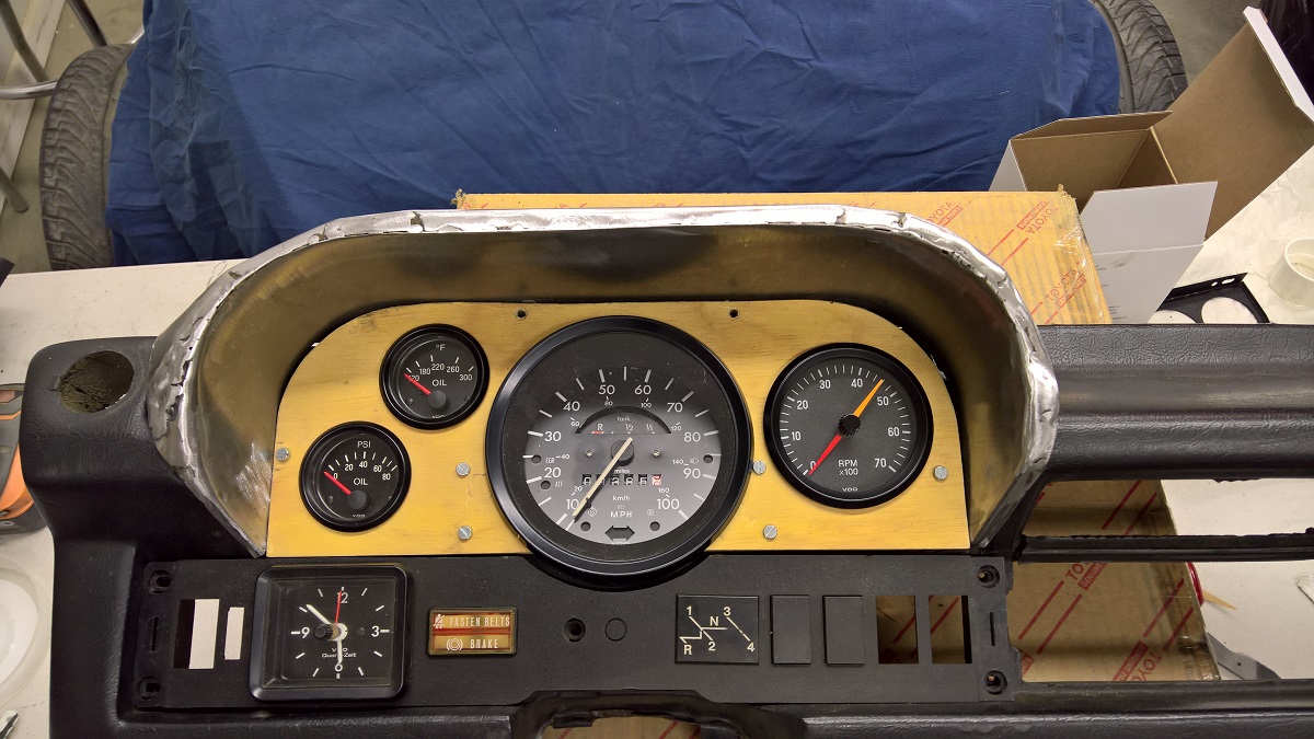 Here with the gauges in. The idea was to keep the Speedometer with the gas gauge, and all the warning lights.