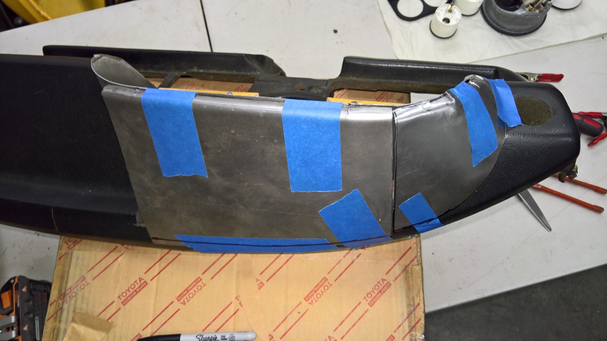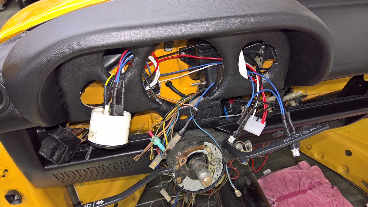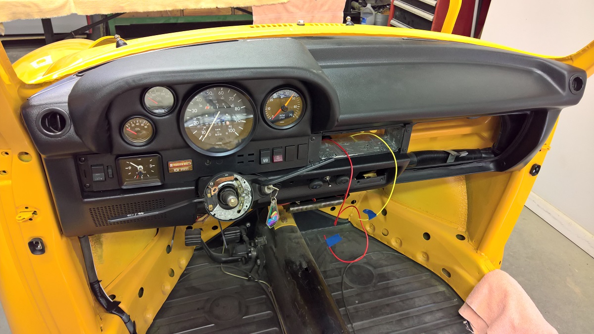 The Super Beetle 1303 has a dash with only one gauge, and there is no room for a Tach, and some other gauges. So I customized it a bit. I cut this piece out.