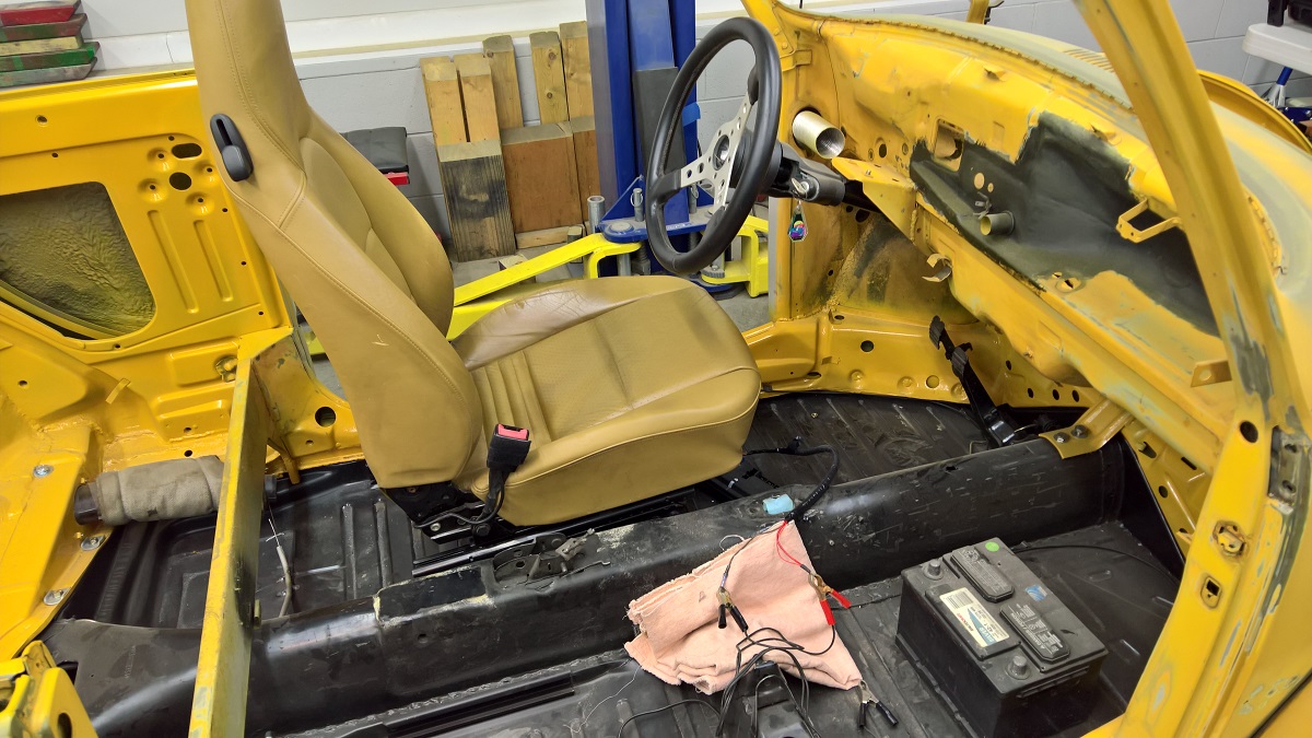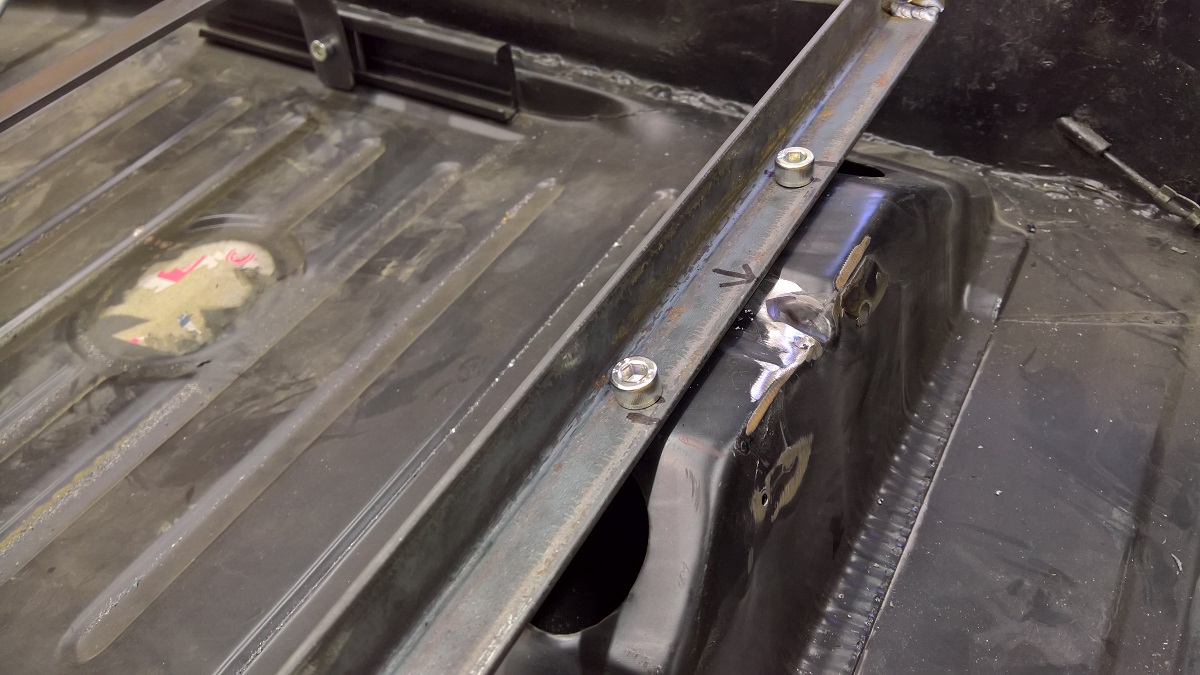 At the rear side it goes in to the existing slide channels and is just tight up with a block. The whole thing is all bolt in, and the seats will bolt in with their original brackets.