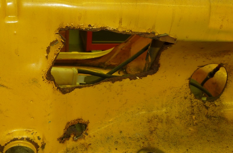 Anyway, I think I need to fix this, besides other holes. Here is one door. It has some rust at the bottom.