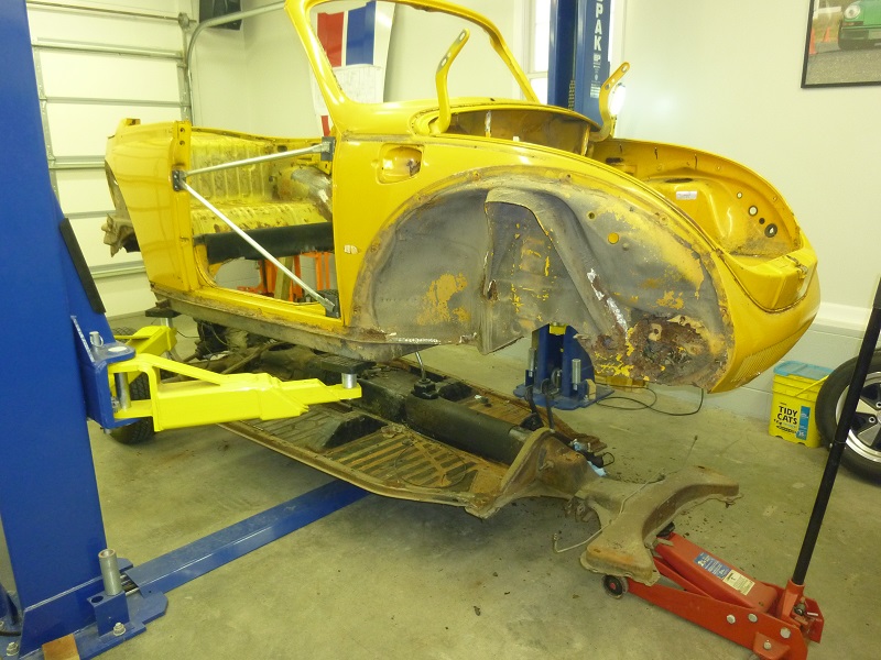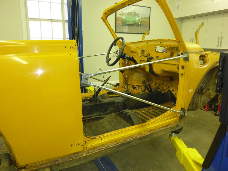I made some braces for the upper part of the body, where the doors were. And then split to body from the chassis. Installed the braces